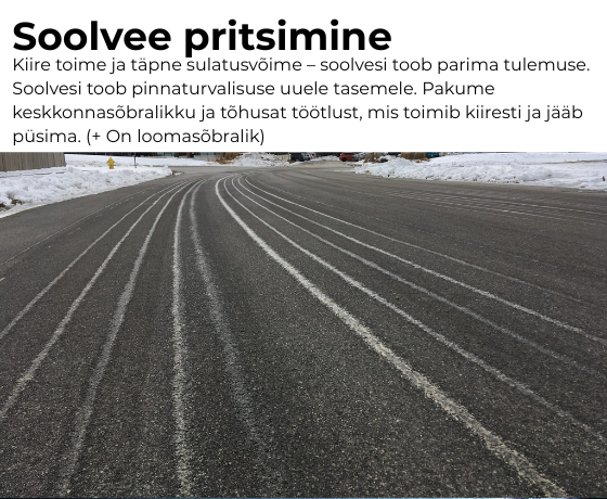 Pakume libedustõrjeks erinevaid lahendusi – liiva, erinevaid soolasid ning kaasaegseid keskkonnasõbralikke alternatiive, valides sobiva vastavalt teie soovidele ja vajadustele.